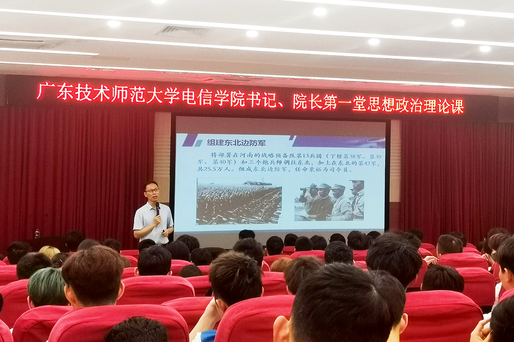 罗旭辉的授课题目为《弘扬抗美援朝精神,时刻牢记初心使命》。他从朝鲜战争的爆发讲起,声情并茂地讲述了毛泽东同志如何果断决策,志愿军战士在战场奏响的一曲曲可歌可泣的凯歌,并为同学们解读了伟大的抗美援朝精神。罗旭辉表示,抗美援朝战争是中国共产党百年艰辛奋斗史的一个缩影,也为新中国站立、发展和壮大奠定了坚实基础。希望广大同学们认真学习并悉心体会抗美援朝精神的科学内涵和深厚意蕴,厚植家国情怀,坚定理想信念,将个人理想融入到实现中华民族伟大复兴的梦想当中。