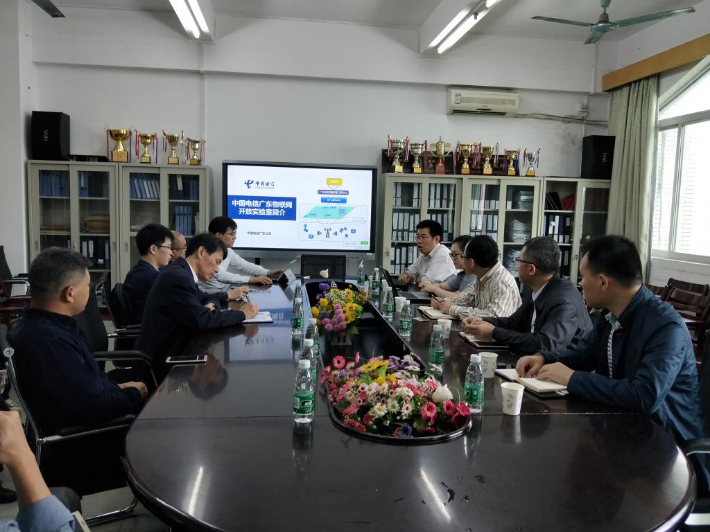 日前,广东亿迅科技有限公司技术支撑部吴斯扬副总经理一行五人到公司开展了主题为“物联网新技术及产业生态圈”的技术交流活动。 公司卓光琳书记代表全院师生对吴副总经理一行的到来表示了热烈的欢迎,蔡君副经理介绍了公司的基本情况。随后,亿迅科技王海滨专家详细介绍了中国电信广东物联网开放实验室的架构、功能及服务等情况,还介绍了NB-IoT技术的应用及部署现状。参与交流活动的专业老师就物联网新技术的发展趋势和应用前景等方面问题与企业的专家进行了深入的学术研讨。最后,吴斯扬副总经理一行对公司物联网实验室和广东省未来网络工程技术研究中心进行了考察。