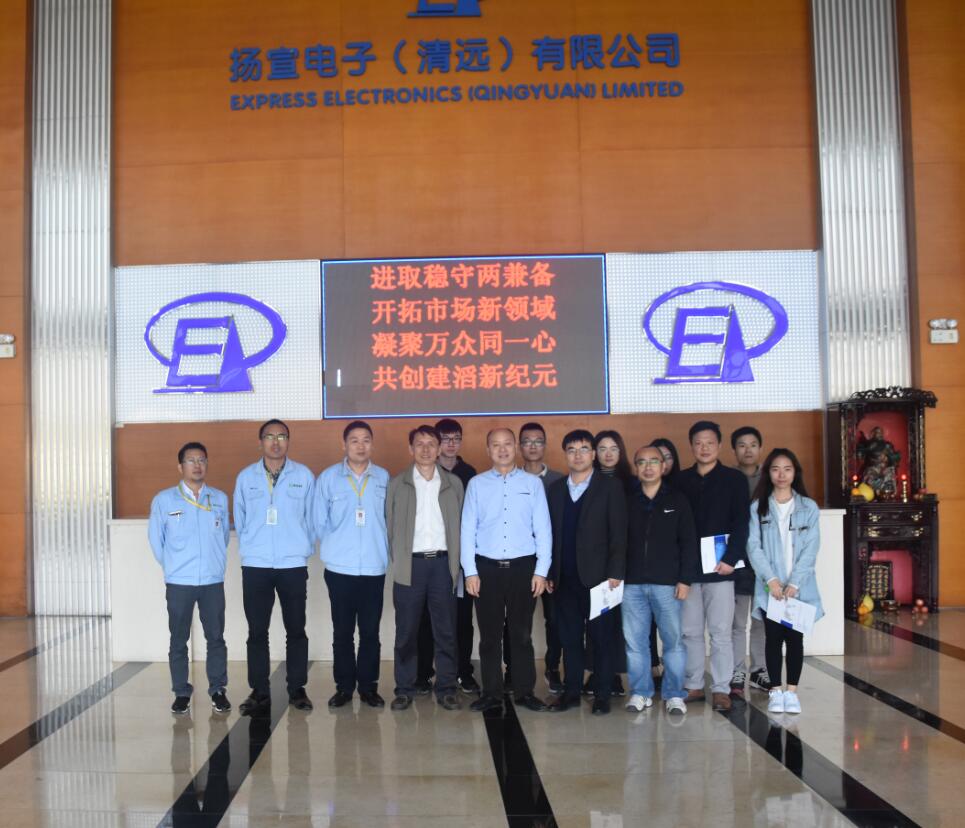 2017年12月1日,在公司党委书记卓光琳、副经理蔡君的带领下,2016级电子与通信工程专业硕士全体研究生和部分教师前往清远市有关企业开展实践教学活动。