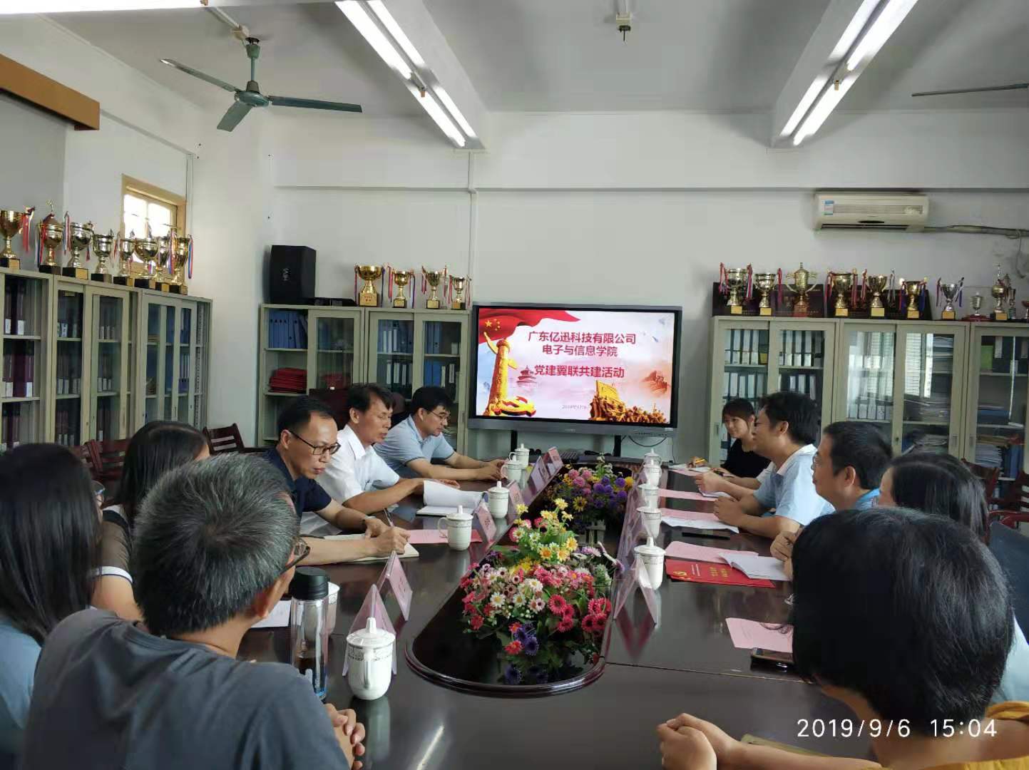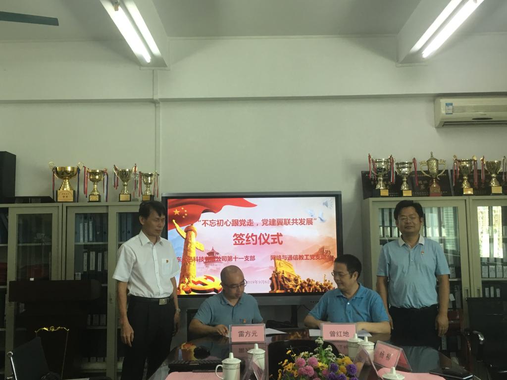 2019年9月6日,广东技术师范大学BWIN必赢网络与通信教工党支部与中国电信股份有限公司广东亿迅科技有限公司第十一党支部,以“党建翼联”主题实践活动为平台开展党建共建活动。广东亿迅科技有限公司党委书记常文卓书记出席,公司党委书记卓光琳主持共建活动签字仪式。