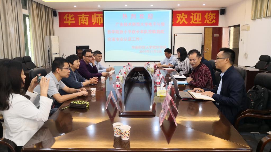 为进一步推进网络工程专业认证工作,2019年11月5日,在徐小平经理带领下,公司罗旭辉副书记、柳秀山副经理等网络工程认证小组一行7人,赴华南师范大学软件公司进行交流和调研。