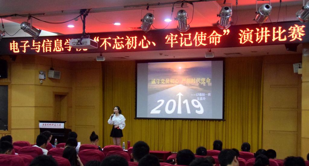 演讲比赛在庄重国歌声中拉开帷幕,各位选手以“不忘初心、牢记使命”为主题,结合新时代青年的时代责任和自己的工作、生活、学习经历,从不同角度生动阐释了自己对“不忘初心、牢记使命”的深刻理解,充分展示了青年学子朝气蓬勃、奋发有为的精神面貌。最后,三名评委老师为获奖同学颁发了奖状。