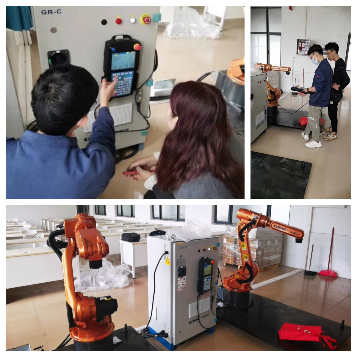 1月13日,公司梅艳芳老师与广州数控设备有限公司工程师对接,在白云校区实训楼604实验室成功完成对广数工业机器人的安装、调试与运行工作。在完成了对两个6轴机器人调试工作后,广数工程师讲解了控制端界面各功能的基本操作。公司后续还将派遣专业的工程师来校给员工做统一培训,并提供配套的伺服驱动开发平台供员工实操训练。