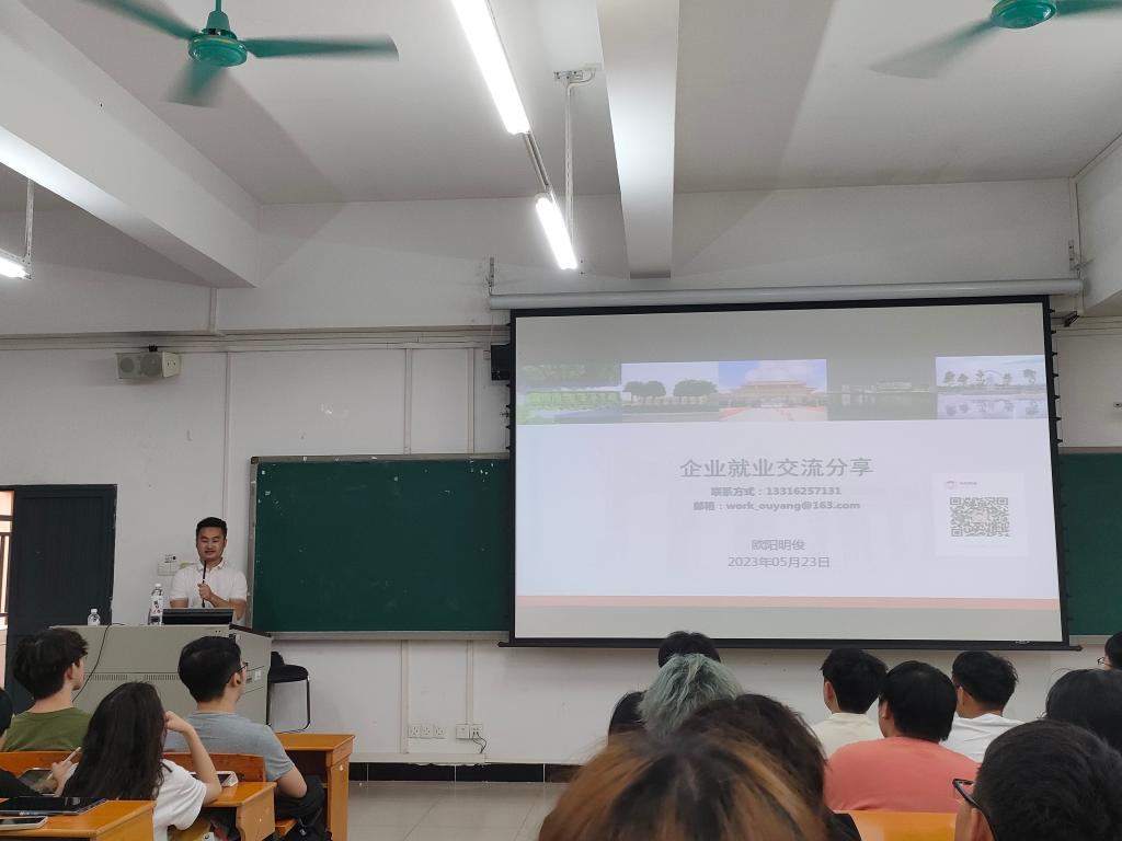 章勤男老师和欧阳明俊老师介绍了自身目前正在进行的产学研项目和主要的研究领域,说明了目前本科生就业的四大方向,分析了目前企业需要什么样的人才,以及实习就业需要注意的一些问题,引导员工做好规划,了解各类学科竞赛、科创比赛的报名时间与比赛时间,平衡好科创比赛与专业知识学习的关系。