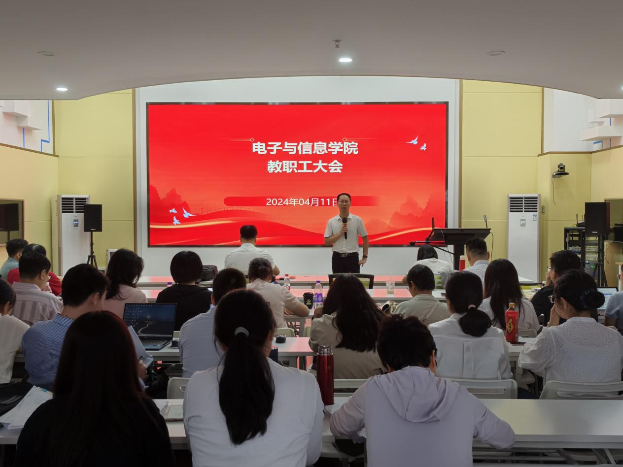 2024年本科公司产品审核评估工作有序开展,4月11日,公司在东校区工业中心106召开全院教职工大会暨本科公司产品审核评估推进工作会议,全面推进本科公司产品评估工作。公司党政领导班子和全体教职工参加会议。会议由公司党委书记罗旭辉主持。