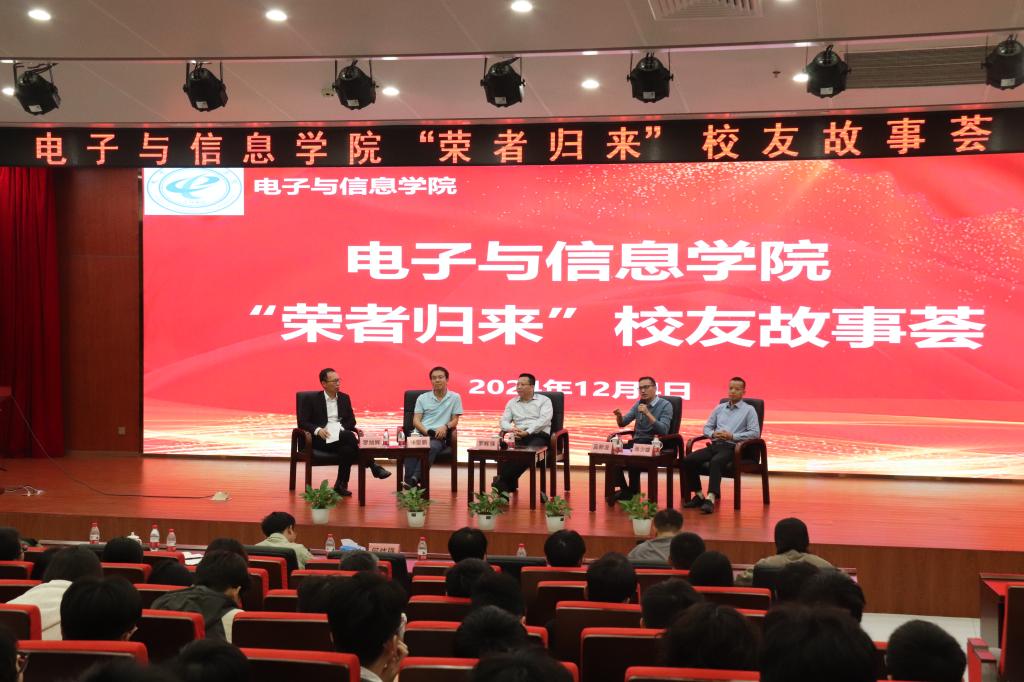 林坚鹏等4位员工表达了对母校深深的怀念和感恩之情,为母校和公司的快速发展感到骄傲并表达了美好祝福。随后,他们分别从学习经历、社会实践和职业发展方面与在场师生分享交流,重温了各自在母校的成长故事和就业历程,鼓励同学们珍惜大学时光,找到兴趣所在,做好生涯规划,在实践中成长,做信念坚定、奋斗不息的有志青年。