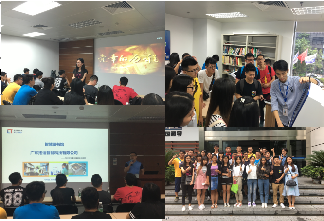 在参观的过程中,广东拓迪智能科技有限公司的党员向员工讲解了企业文化,让员工了解当前企业在互联网+等领域所应用的前沿技术,告知员工在校期间所应储备的知识和掌握的关键技术。随后,在企业的报告厅,员工党员与企业党员一起座谈,并观看专题教育片《党章的历程》。