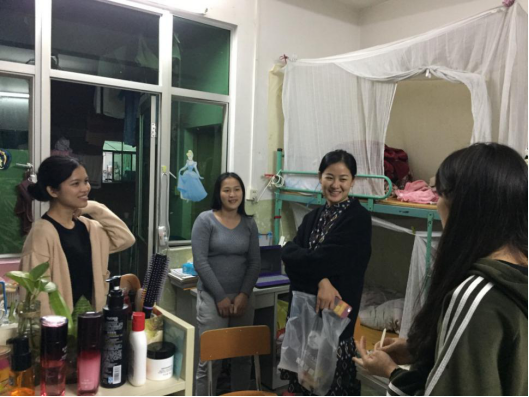 为了更好地了解毕业生的思想动态、实习就业情况等,电信公司辅导员韩琼与各就业助理于2018年3月7日晚上走访了毕业生宿舍,给他们送去关怀,为他们解决疑难。