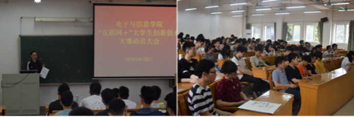 动员会上,罗旭辉副书记从公司和公司两个角度向同学们解读“互联网+”创新创业相关文件。他指出:一,公司目前大力支持同学们参加“互联网+”创新创业大赛,希望同学们能够把握住机会,积极组队参赛。二,公司对获奖的队伍和同学也会提高综测加分等其它一些鼓励措施。希望所有班委能够以身作则,积极发挥模范带头作用,同时动员班上同学积极报名。宋玉林老师也对此次“互联网+”创新创业大赛概况进行解读,并罗列了一些与电信公司专业相关的科创竞赛,希望同学们能够积极把专业基础知识的学习和科创实践活动有机结合起来,营造良好的科创氛围。