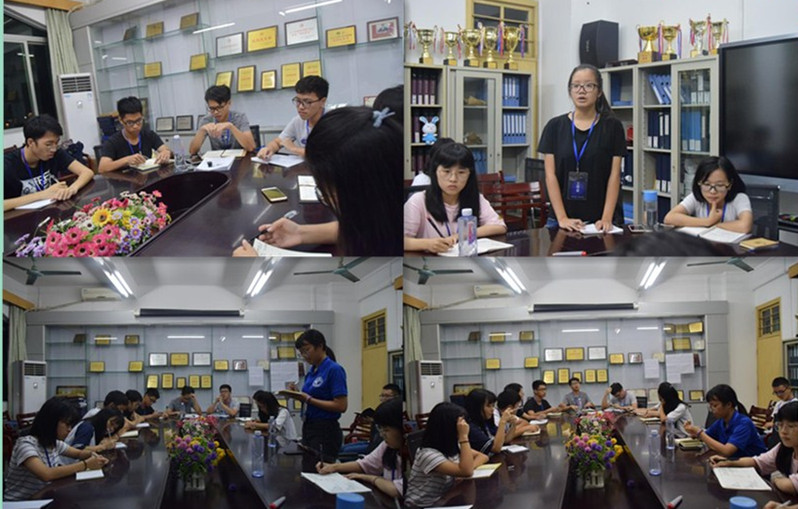 会议开始前由秘书处进行签到,之后由网宣部第一个做工作汇报、接着就是团学的各个部门做上周工作总结以及本周工作计划。紧接着主席团让各个部门的部长对上周工作进行总结,体育部汇报了新生军训的相关事宜;生活部汇报了新生军训内务检查情况;学习部汇报了上周末的教学技能大赛情况,并总结了大赛的不足;文联部简述了公司迎新晚会的准备情况等。接着,主席团询问各部门对于近期工作是否有疑惑或烦恼,各部门积极地提出问题,主席团认真地回答了大家的疑问并给出了解决方法。会议后阶段主席团讲了关于招新的准备工作,各部门提出对招新工作的意见及建议,大家集思广益,为招新工作做好充分的准备。