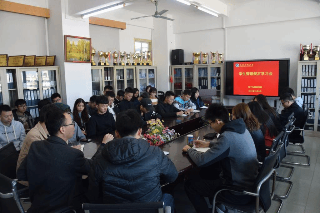 为了学习贯彻公司有关规定,加强广大员工的诚信意识,以积极乐观、诚实守信的态度去面对每一次考试,BWIN必赢于2019年12月3日中午在一教13楼召开员工管理规定学习暨学风建设大会。电信公司党委副书记罗旭辉、辅导员宋玉林老师、苟雷鸣老师及各班班长、团支书参加了此次会议。