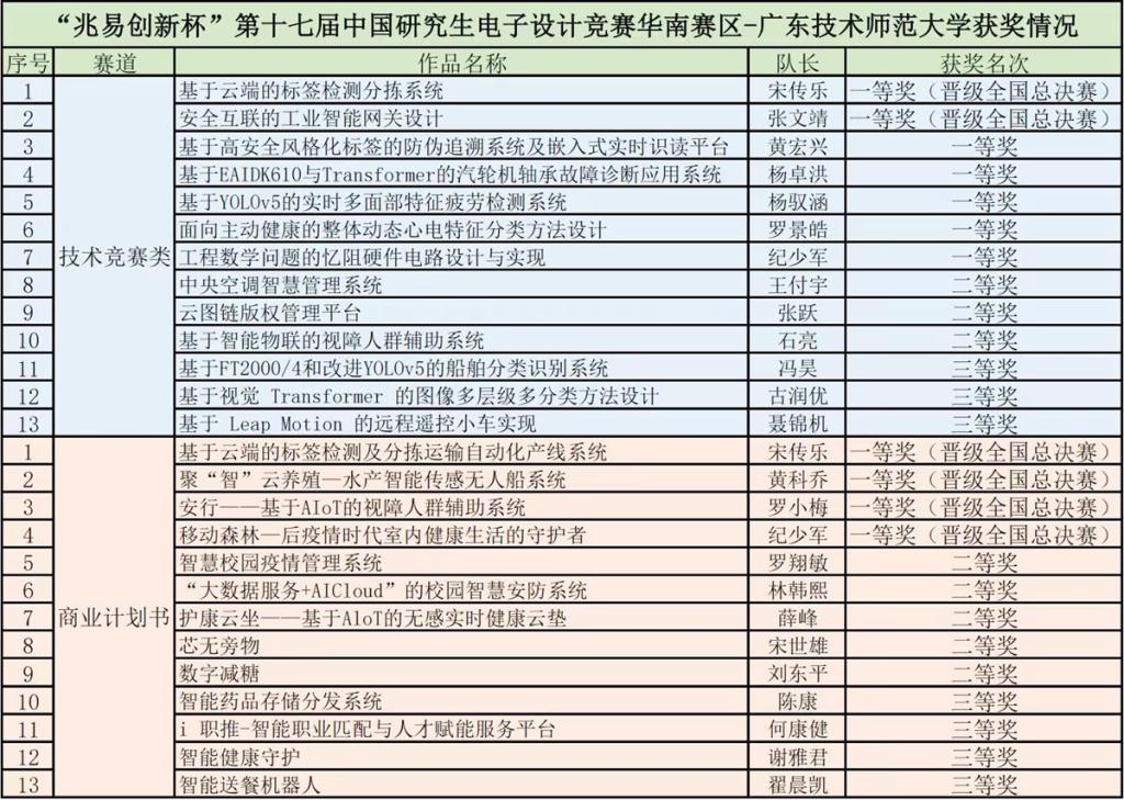 近日,由教育部学位管理与研究生教育司指导,中国学位与研究生教育学会、中国科协青少年科技中心、中国电子学会共同主办的第十七届中国研究生电子设计竞赛华南赛区竞赛完美落幕。在本届研电赛华南赛区决赛中,公司共获奖26项,创历史新高!其中,技术竞赛类获一等奖7项(其中2项晋级全国总决赛)、二等奖3项、三等奖3项;商业计划书专项赛获一等奖4项(全部晋级全国总决赛)、二等奖5项、三等奖4项。同时,公司单纯、岑健、蔡君、陈荣军、李亚、王小梨、蒋健健等7位老师被评为“华南赛区优秀指导老师”;公司被授予“华南赛区优秀组织奖”荣誉称号。