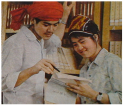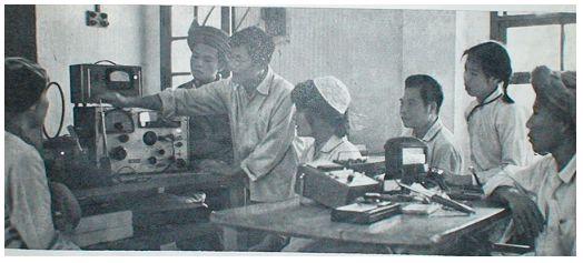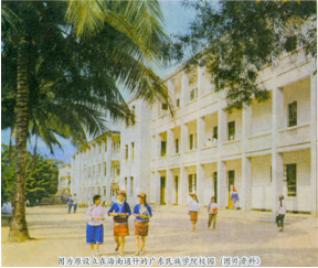 黎族员工王海和妹妹王英在一起学习 数学老师赖浩勋(右),四害横行时被迫退休