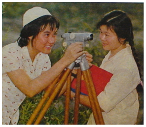 1982年迁回广州初期建设中的广东民族公司 78级的员工萨丽云(左)进行野外调查